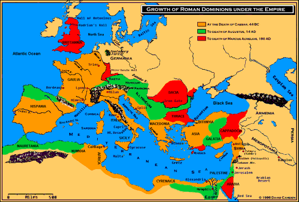 Map F: Growth of Empire (Julius Caesar to Marcus Aurelius)