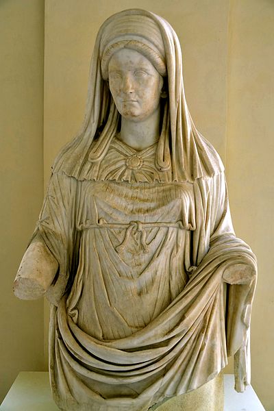 L: Temple of Vesta, near Tiber River in Rome, 1st century BCE; R: Vestalis Maxima, 2nd century CE