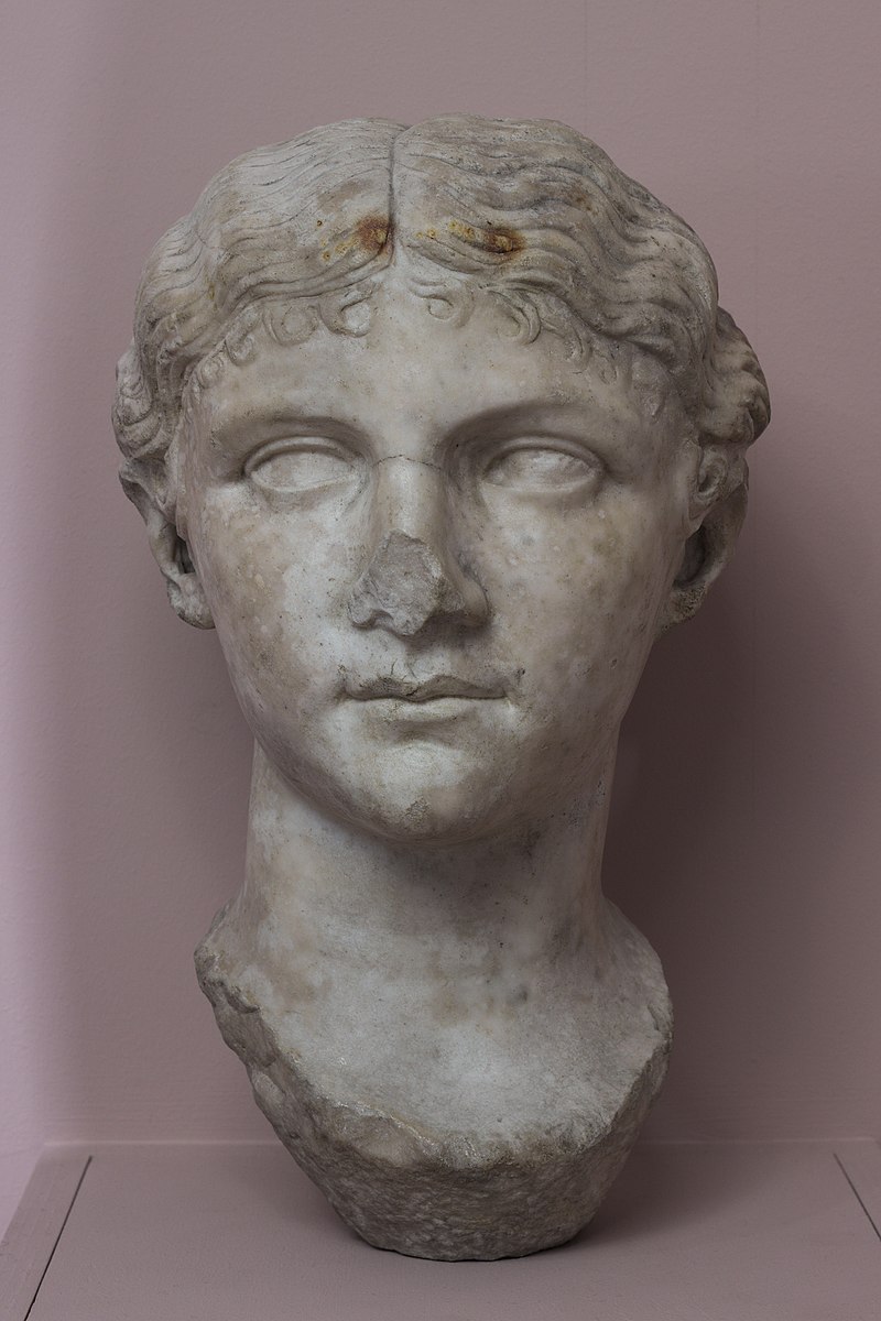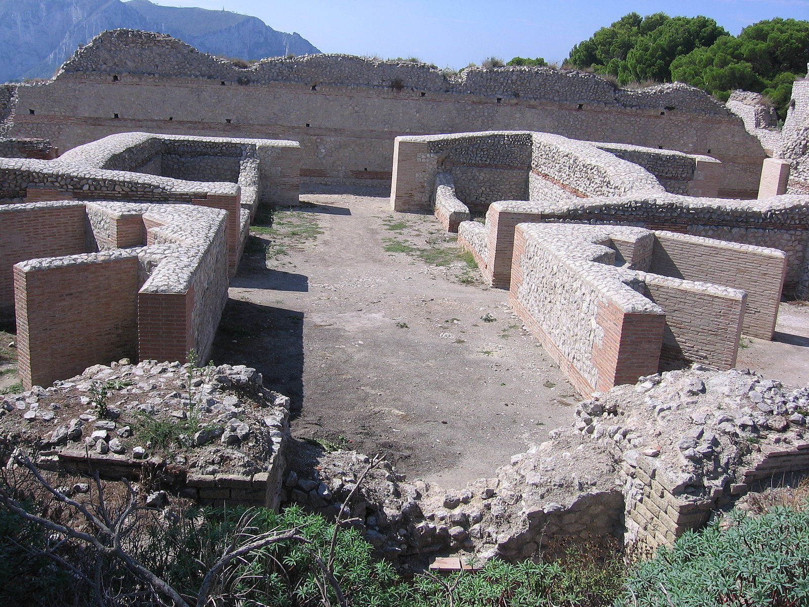 L: bust of Tiberius; R: remains of Villa Jovis at Capri (completed, 27 CE)