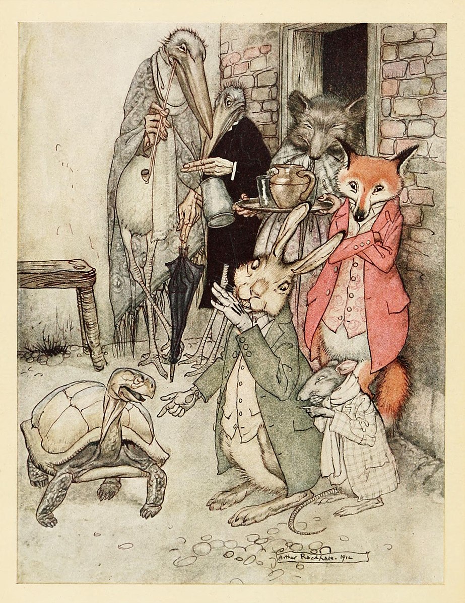 Arthur Rackham's illustrations, The Tortoise & the Hare and Town & Country Mouse, 1892
