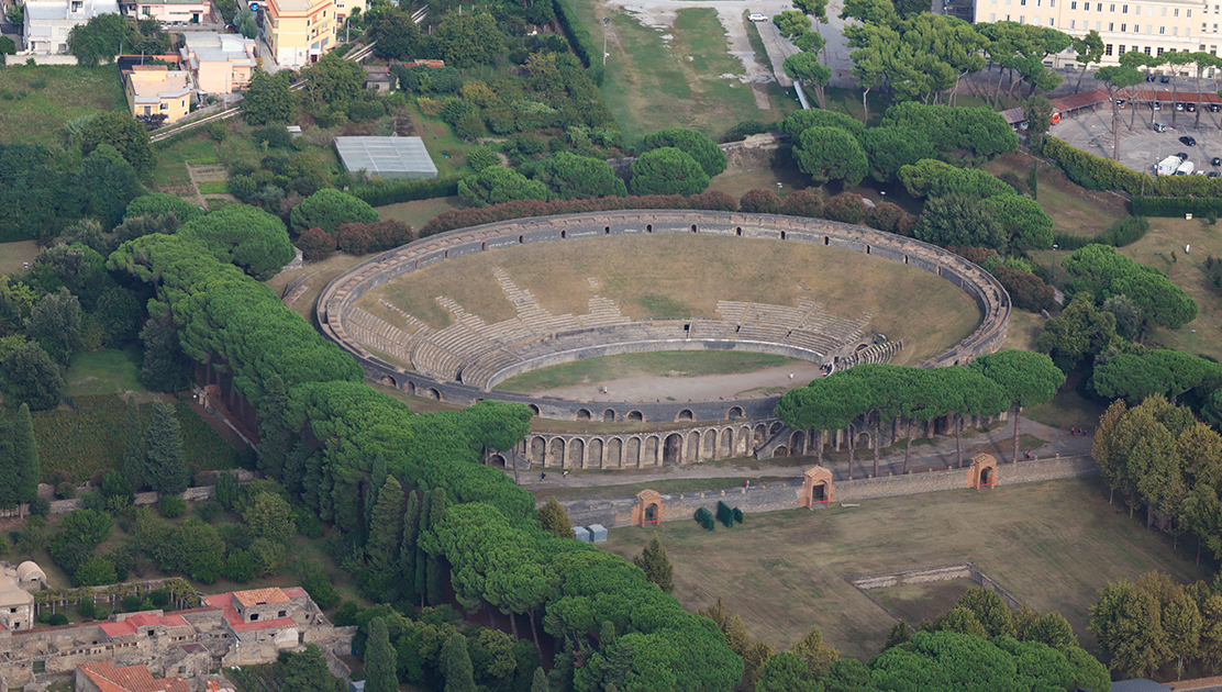 L: Amphitheater at Pompeii; R: Devastation of 2023 Turkey & Syria earthquake