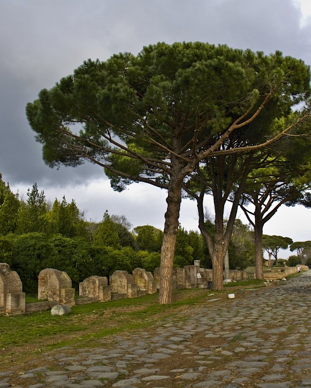 Street in Pompeii today with Mt. Vesuvius in background