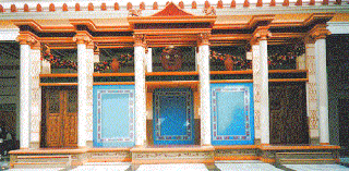 L: Theater of Dionysus, Athens; R: Hypothetical Temporary Roman Theater Backdrop (Getty Museum)